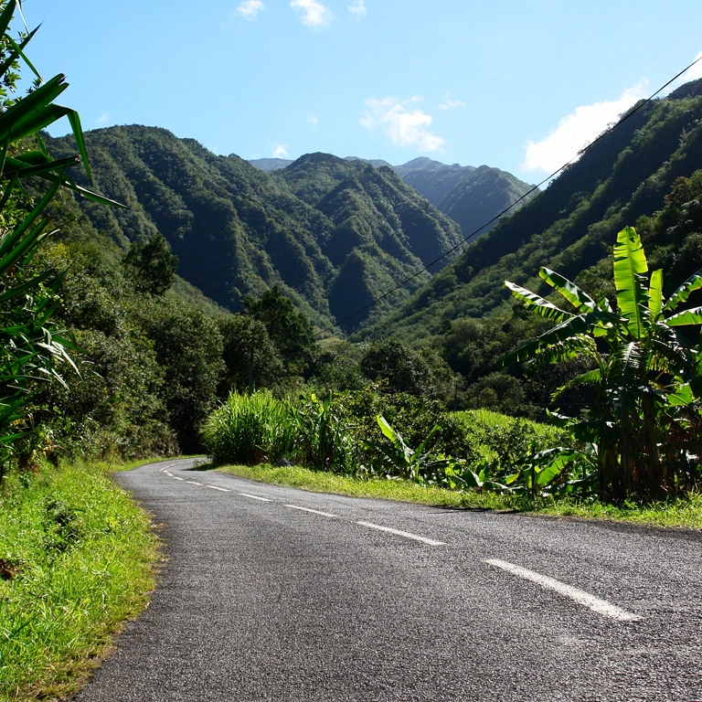 Les routes de l’île, comme celle menant à Cilaos, sont connues pour leur caractère sinueux, traversant des paysages spectaculaires et offrant des points de vue sur les remparts abrupts qui entourent les cirques.