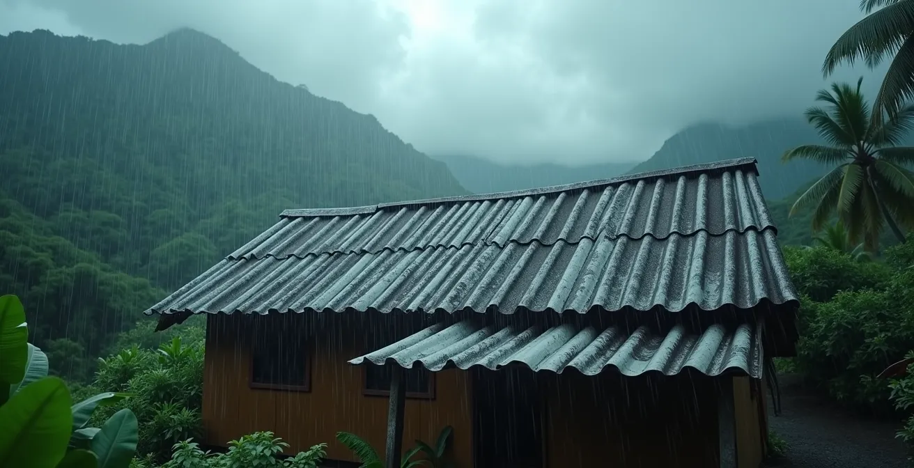 Le bruit n’est que la partie audible de l’iceberg. Une toiture en tôle mal conçue est aussi une fournaise sous le soleil de midi et une passoire potentielle lors d’un cyclone. Oubliez la lutte contre les éléments. La clé, transmise par les anciens, est de comprendre comment construire en harmonie avec eux. Il ne s’agit pas de colmater des brèches, mais de bâtir une véritable architecture de résilience, où chaque choix, de l’isolant à la forme du toit, contribue à votre bien-être.