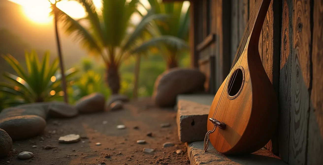 Loin du vacarme des instruments modernes, une vibration sourde et profonde raconte l’histoire de l’île de La Réunion. C’est le son du bobre, un arc musical qui semble tout droit sorti des temps anciens. Pour le musicien curieux, habitué à la perfection chromatique d’une guitare ou d’un piano, le bobre est une énigme. Un simple arc de bois, une corde tendue, une calebasse pour seule amplification. La plupart des guides se contentent de le décrire comme un instrument traditionnel du Maloya, aux côtés du roulèr et du kayamb. Ils évoquent son origine africaine, sa facture rustique. Mais cette approche descriptive passe à côté de l’essentiel.