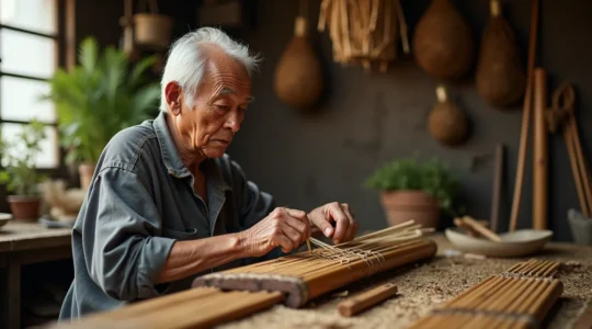 Le son si particulier des instruments réunionnais ne vient pas seulement des mains de l’artisan, mais de la matière elle-même. Chaque fibre de canne, chaque graine de conflore et chaque peau de cabri porte en elle une part de l’écosystème…