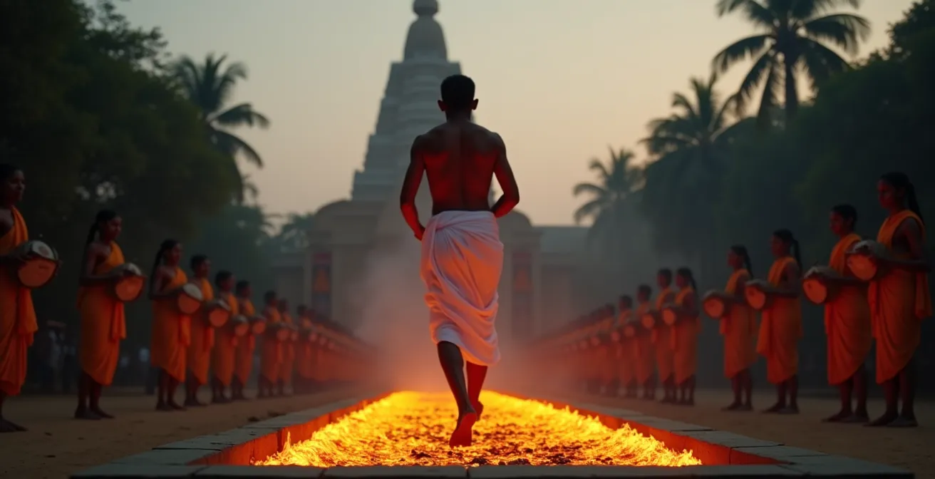 La plupart des guides se concentrent sur l’aspect physique du phénomène, tentant d’expliquer par l’effet Leidenfrost comment la peau résiste à une chaleur de plus de 600°C. Mais cette approche manque l’essentiel. Comprendre la marche sur le feu, ce n’est pas questionner la physique, mais appréhender la profondeur de la foi. C’est décoder un langage spirituel où chaque élément, du jeûne préparatoire au silence de l’audience, a une fonction précise. La véritable question n’est pas « comment font-ils ? », mais « pourquoi le font-ils et comment puis-je, en tant qu’observateur, honorer leur démarche ? ».